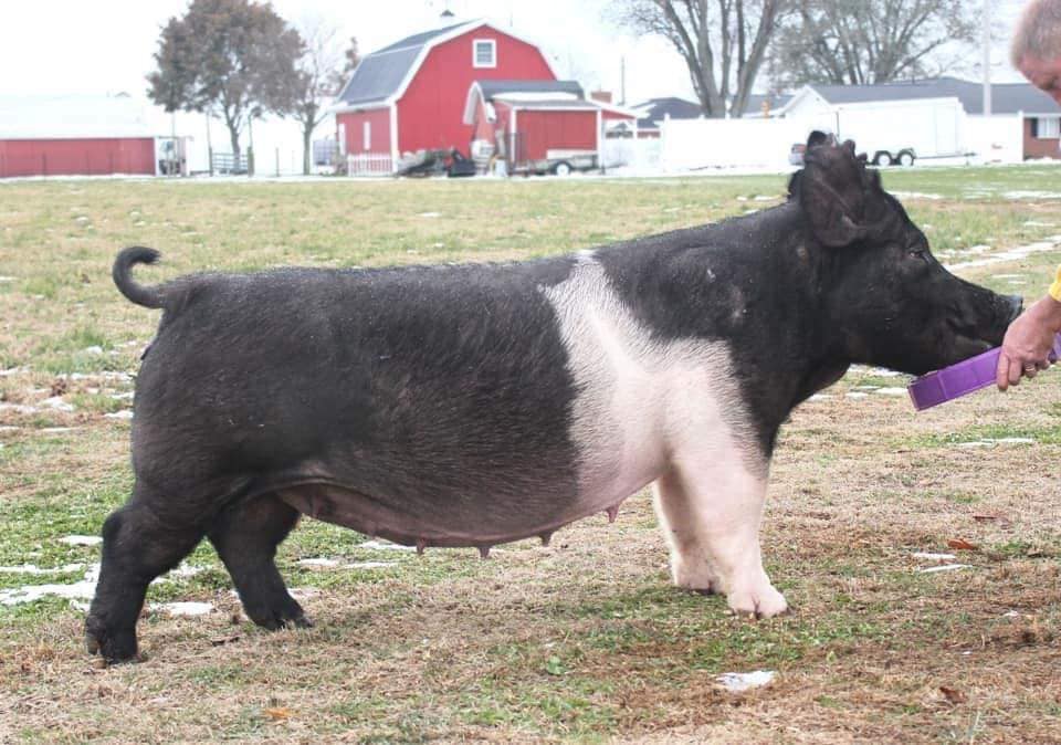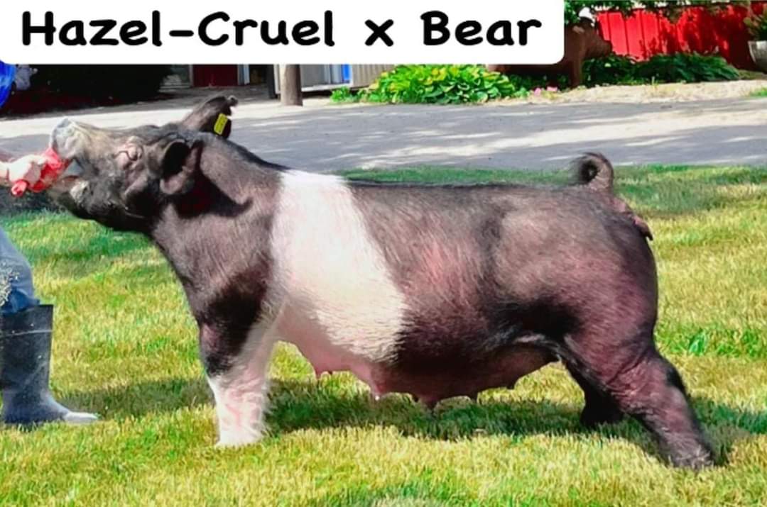 Thanks again to Travis and Kirstin Perry for the opportunity to bring this boar to Minnesota. Mother raised the Breeding gilt of the year in 2018 and then the 2020 Reserve Division 4 gilt at Indy(Cruel Bear’s littermate sister). Our first litters have just hit the ground and we couldn’t be happier with them. Use Cruel Bear on those chubby smaller sows that just throw to much. He will add a great look in terms of front end extension and freaky neck. Cruel Bear will make them better structured and flexible on the go!